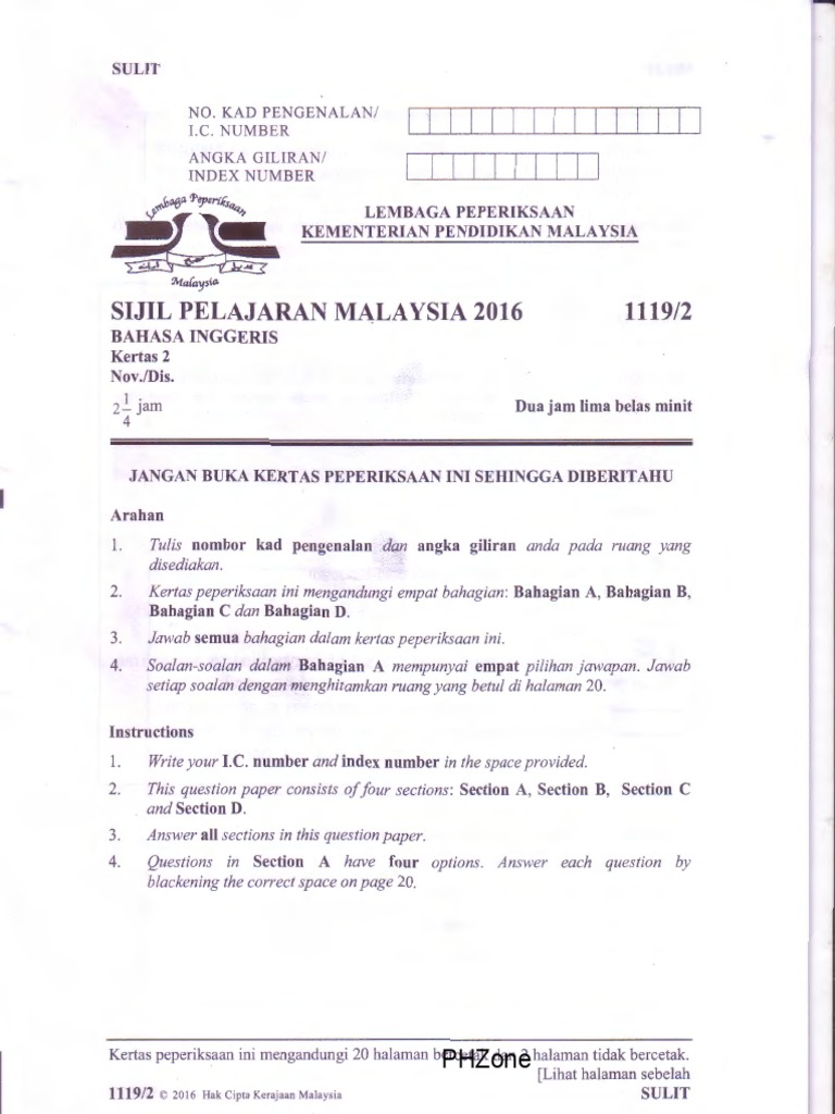 Kertas Sebenar Spm 2016 Bahasa Inggeris 1119 2 Pdf Pdf Makan Makanan