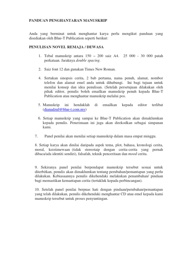 Syarat Dan Kriteria Penghantaran Manuskrip Bagi Novel Cinta Pdf