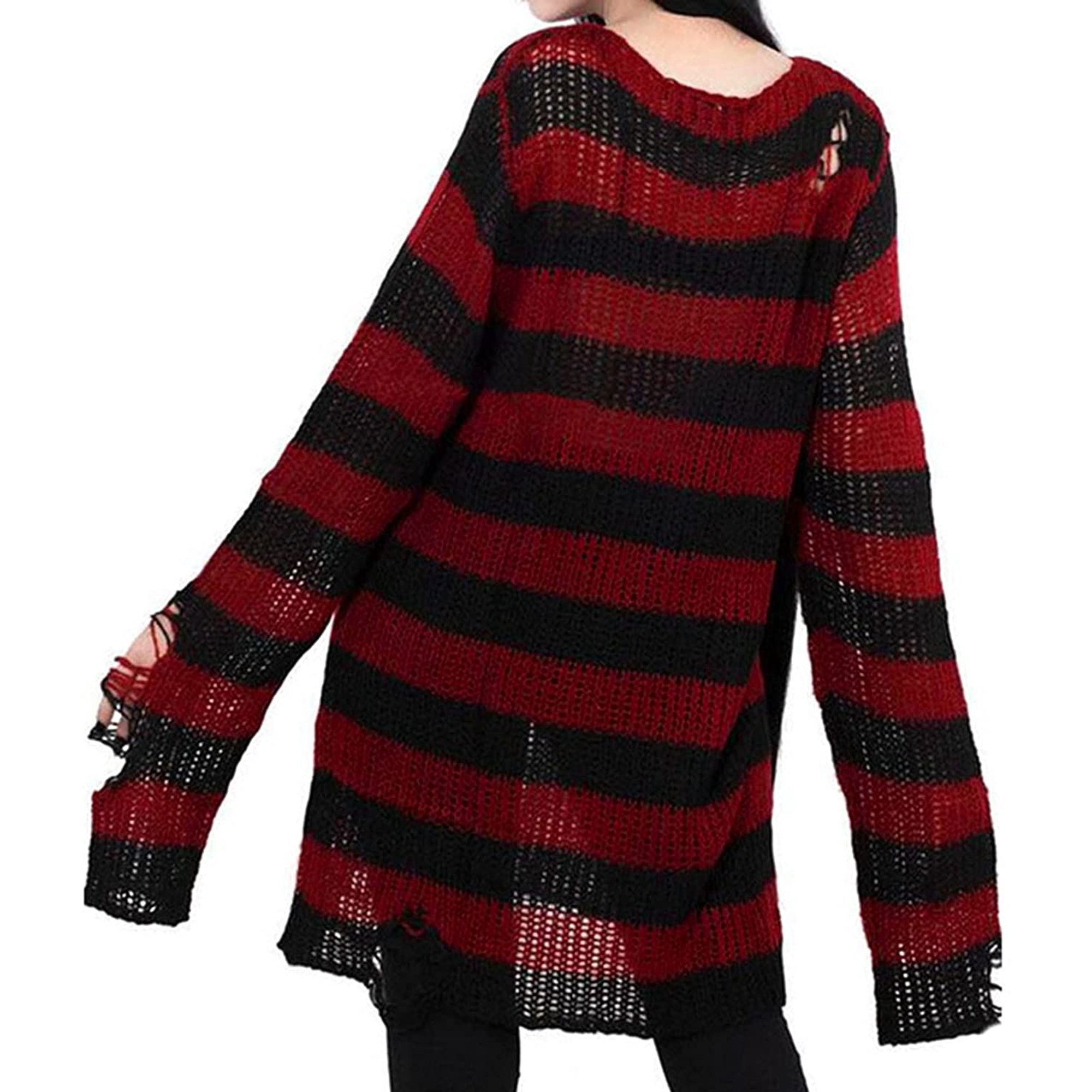 Gothic Punk Long Sleeve Ripped Sweater For Women Stripe Print Crew Neck Cut Out Holes Broken Knitted Pullover Walmart Canada